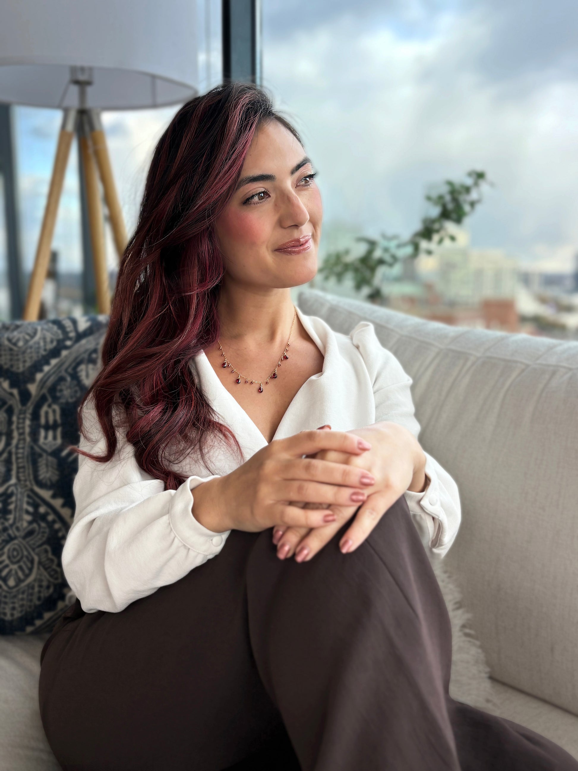 This garnet charms necklace exemplifies refined boho aesthetics through its thoughtful design. The necklace showcases red garnets, prized for their rich color and symbolic significance. The suspended charm configuration allows for graceful movement, while the 14 karat gold filled setting ensures durability and lasting luster. An investment piece that transcends seasonal trends.